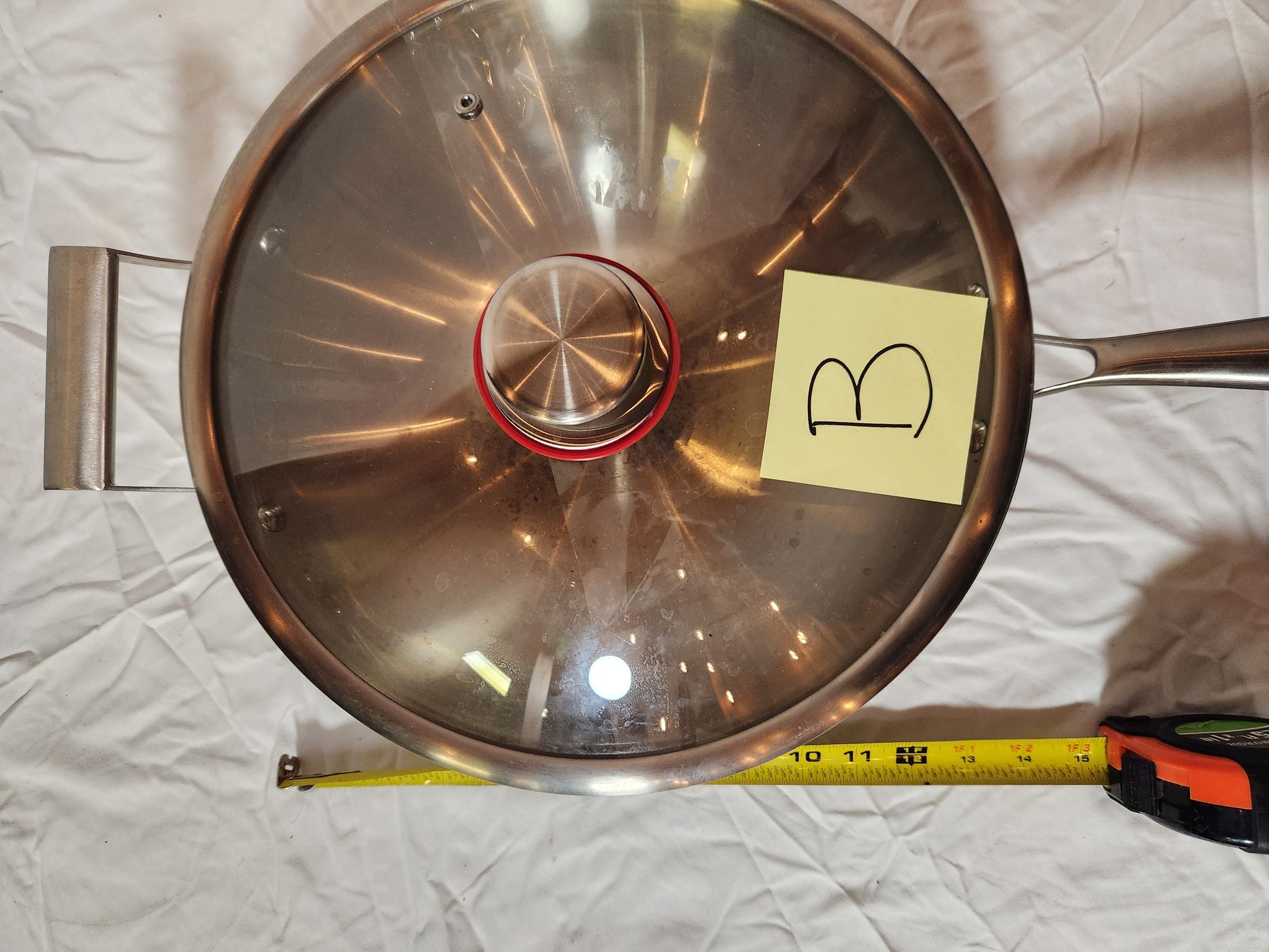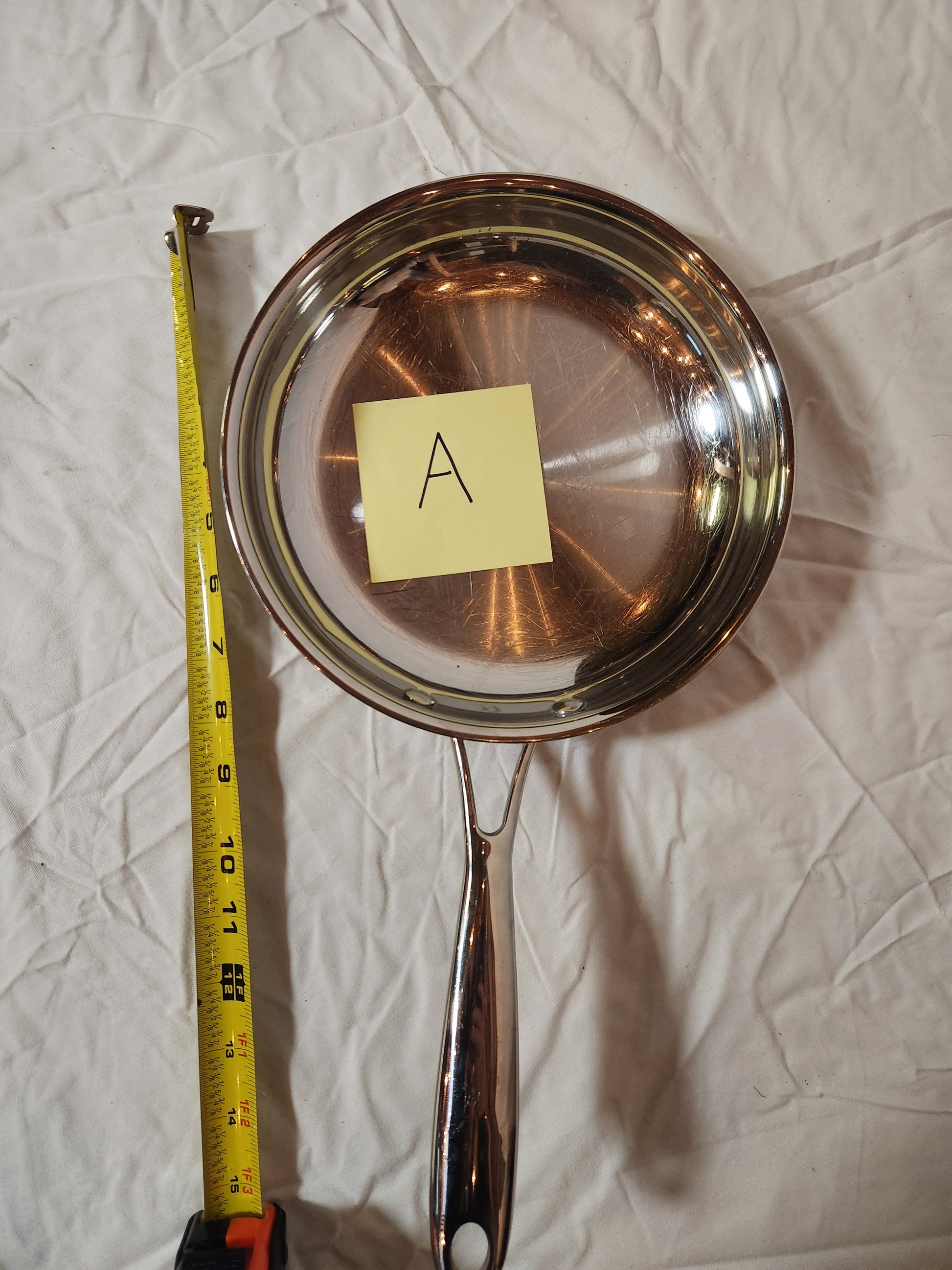 Condition: Used, but well-maintained. Pan B has some interior cosmetic wear typical of stainless steel (patina/discoloration) that does not affect cooking performance. Ready to be put back to work!