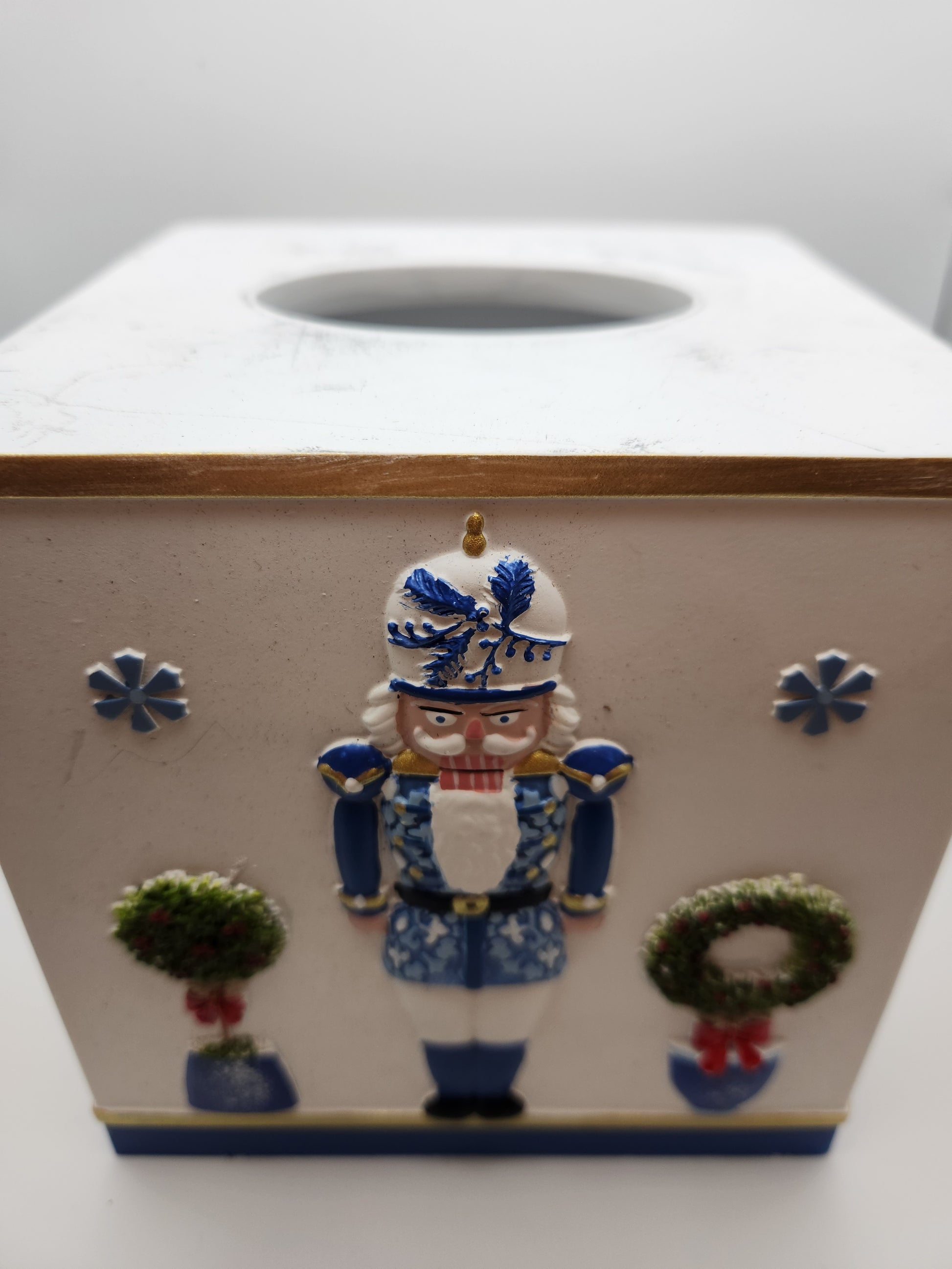 🎄 Charming Blue & White Nutcracker Christmas Tissue Box Cover - Holiday Decor