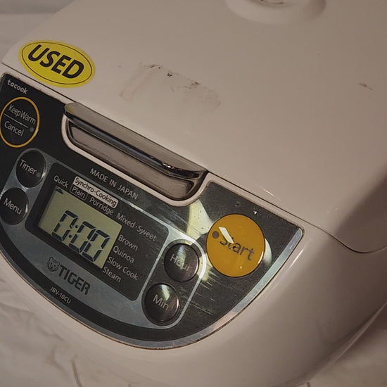 Get perfectly cooked rice and a whole lot more! This Used TIGER JBV-A10U Micom Rice Cooker is a versatile kitchen workhorse, famous for its Microcomputer (Micom) technology that automatically adjusts cooking time and temperature for flawless results every time. It's a great chance to own a high-quality Tiger cooker at a great price!
